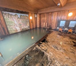 安達太良山への登山で楽しみにしていた「くろがね小屋」の温泉が残念ながら工事中で入れなかったため、麓の岳温泉まで降りて温泉でもと思っていました。が、登山口でもあるスキー場に奥岳の湯が併設されているのを見つけて、ここでさっぱりしたい衝動に駆られ入ってみました。
