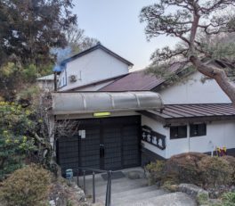 四阿山への登山の後、いつものように温泉を探して見つけた千古温泉。ちょっと変わった名前と真田氏にゆかりがあるというのが気になって向かってみました。温泉まであとちょっとというところで、突然道が細くなり曲がりきれるかなというような急カーブを曲がりながら降りたところに日帰り入浴施設なのに旅館なのかな?と思う建物が。駐車スペースが3台分くらいしか無かったけど幸い1台分空いていました。