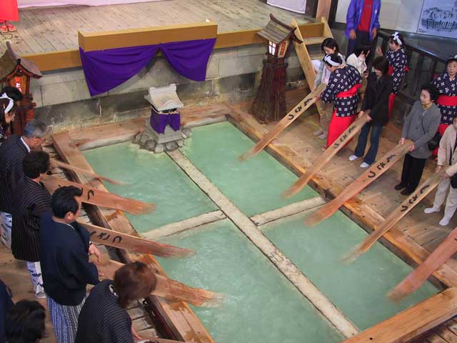 草津温泉にはたくさんの源泉があって、ここのお湯は本白根山の「万代鉱」と呼ばれる源泉を引いているのだそう(てっきり後から宿のHPを見るまで、湯畑のお湯を引いているのだと思っていました(笑))。とても酸性の強いお湯ということだけれど、あまりそういう感じもせず(ぴりぴりするとか)、入ると肌が少しつるつるになってかつ湯冷めしにくく泉質のよさを感じるお湯。なめてみたら、強烈に苦かったのだけれど、酸性のお湯って苦いものなんだろうか。