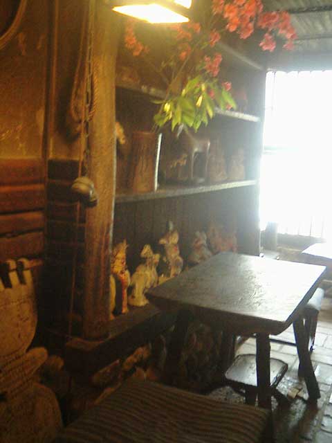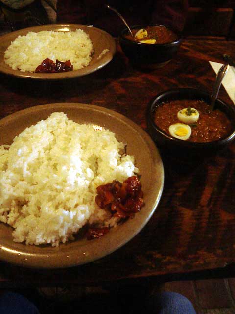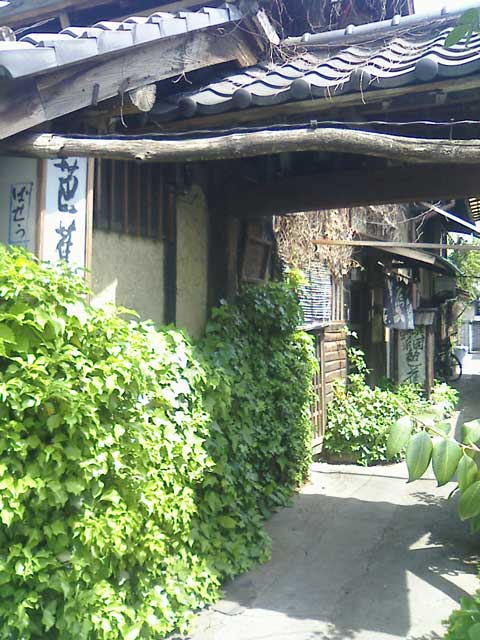 ガイドブックに載っていた 芭蕉 というお店のカレーがとにかくうまそーだったので、桐生までドライブしてお昼を食べに行く。いただいた「印度かりー」は玉ねぎの甘さがコクを出し、ちょこんとのっているうずら卵もまた良く合う。食べ物も美味しいのだが、ココの面白さはこのレトロな建物。昔の農家のような佇まいで壁は土壁、外は蔦?で覆われていて、中には蓑がさがかかっていたり、農具のようなものが置いてあったりする。薄暗い店内は、外の暑さがうそのようにひんやりとしていて、机がうっすらと濡れていた(冷房ではないんじゃないかな…)。給仕をしているおばさんの独特な化粧は、今にもシャンソンでも歌いそうな勢い(笑)。店内は思ったよりも広く、作っている人を除いては、このおばさんが一人で切り盛りしているようで、お客がいないと人の気配すら感じない(実際、自分たちの後にお客が入って賑わいだした)。