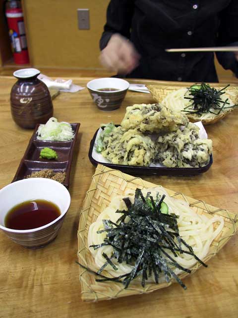 ざるうどんと舞茸の天ぷらをいただく。少し透明でつるつるとしてこしの強い麺、これは美味しい。久しぶりにこういうこしの強いうどんを食べた気がする。強いて言うなら、わさびが少し気が抜けてしまっていたのが残念。舞茸の天ぷらは1人前?ですごく大きなのが3つ出された…1人前しか頼まなくて良かった(笑)。もともと天ぷらは苦手な方だが、揚げたてってことと絶妙な塩加減もあってかすごく美味しかった。