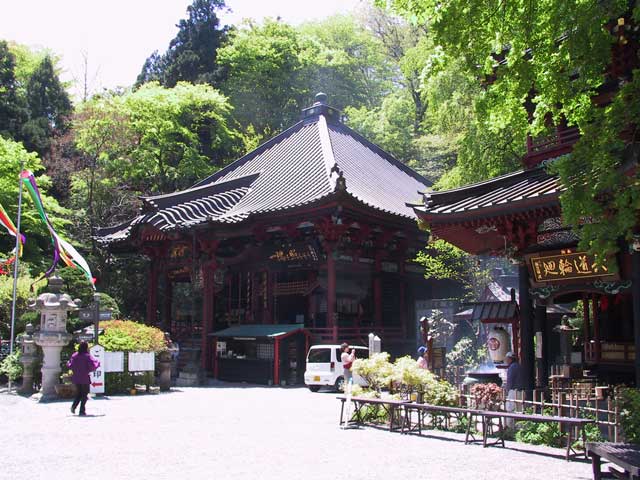 腹ごなしもかねて、近くにある坂東十六番札所の 水澤観音 を訪ねてみる。ここは、正直いい意味で裏切られた感じに興味深い場所でした。r六角堂は、その建物内部に安置された地蔵尊が回転するような構造になっていて(ムービー)、これを手で押して左回りに3回廻すことで供養をするのだそうです。また、龍王辨財天にはたくさんの蛙の石像があって、お水をかけてあげるのですが、調べてみると、ここにたくさんいた蛙が食糧難の時に食べつくされてしまったことへの供養なのだとか…。すごくあいくるしい表情をしていた蛙がなんだかカワイソウだな〜と。