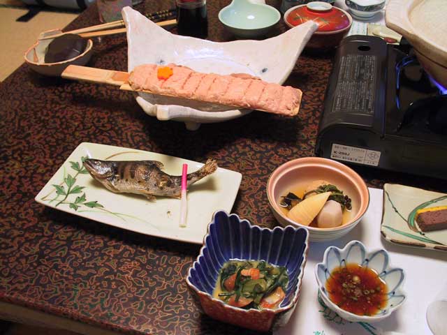 梨木館 は、かなり歴史のある梨木温泉のいわゆる一軒宿。この季節は、新緑を見ながら鳥のさえずりと川のせせらぎを聴きながらゆっくりとできる時期。草津や伊香保などの有名な温泉を抱える群馬で一番の効能があるとまで言われているお湯ってどんなだろうと楽しみにしてました。窓から新緑の見えるお風呂は、夜もなかなか風情があっていい感じ。お湯は褐色で、肌に温泉の成分がついて独特の肌触りを残すような濃い感じのお湯。この温泉、とにかくよく温まり湯冷めしないのにびっくり。冷え性がひどいうちの奥さんですら、お風呂から出てから数時間以上も身体がぽかぽかするらしく、このお湯に毎朝入れば会社での冷えも解消されていいのにと。