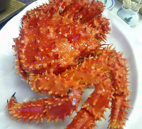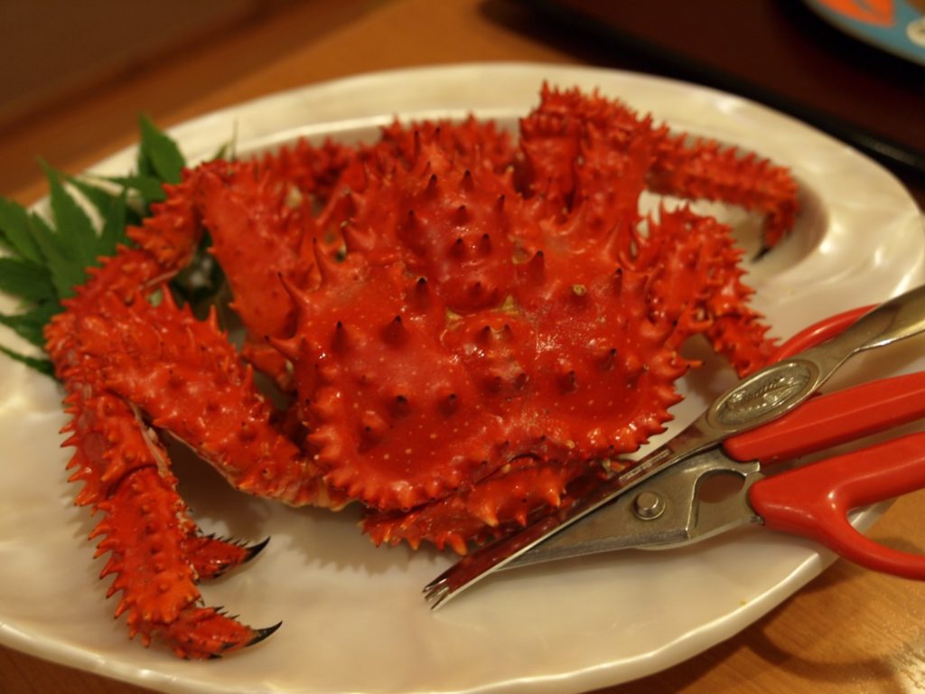 立ち枯れた木々が立ち並ぶトドワラの付け根部分からすぐの尾岱沼にある温泉宿、戸田旅館。食事が美味しいと評判の宿だったので、北海シマエビや花咲ガニを出してくれるように頼んであったのだ。とげとげで硬いからをもった花咲ガニは、はさみで格闘しながらいただく。北海シマエビは茹でたものも良いけれどてんぷらが美味で、これは機会があったらぜひまた食べたいと思う。