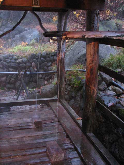 黒湯は上の湯と下の湯の2つに分かれていて、上の湯はまず内湯がある母屋があって、そこから右に抜けると打たせ湯、左に抜けると露天風呂がある。上の湯の露天と打たせ湯は、特に風情が感じられて素晴らしく、また露天の湯が真っ白に白濁していているのも嬉しくなる。夜に裸電球一つのなか星空を見ながら入ると本当にきて良かったと思う。打たせ湯は上品な感じな分、この時期は寒すぎてちょっとつらい。母屋の熱めの湯でほてった体を冷ますのにちょうど良いくらい。
