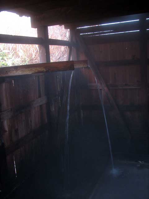 下の湯には内湯と打たせ湯がある。下の湯の方は、ちょっと青みがかっていて少し透明感があり湯の華が沈殿している。お湯は乳白色の単純硫化水素泉、飲泉できそうなので飲んでみるとうっすらと硫黄の香りがあって美味しい。喉が渇いていたらがぶがぶいけてしまいそう(笑)。また湯ざわりもとても優しい。
