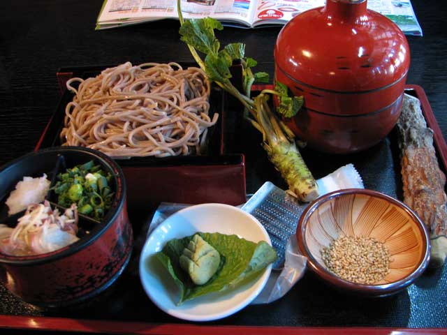 風呂上りに「元祖禅寺そば な々番」で禅寺そばというのをいただいた。食べ方が書いてありますという紙を見ると、このそばの由来についてちょっと紹介されている。なんでも、修善寺で厳しい修行を行う僧侶たちが断食の後などに山菜や山芋を採ってきて蕎麦を打って食べたことにちなんで、ココで蕎麦を食べると修行僧と同じ功徳が得られるということなのだ。まったく都合がいいけど、そうあれば嬉しい(笑)。