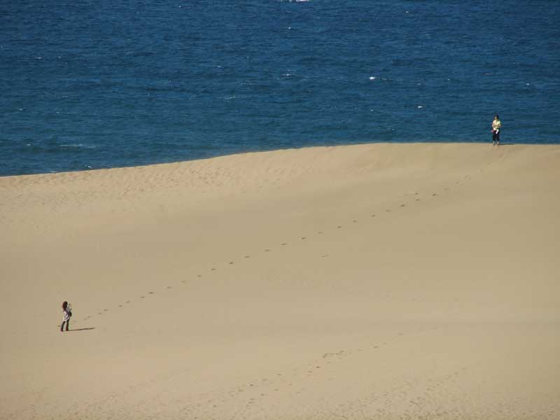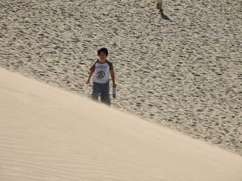 歩くことで残る足跡が一筋残るさまや、それが風でだんだんと消えていくさまを見ているのは飽きない。砂丘の砂はとても粒子が細かくて、風が作り出す文様も美しい。風が吹くたびに立ち止まって様子を見る子供がいて、こういうものへの興味というのは大人も子供も変わらないなぁと思ったり(笑)。