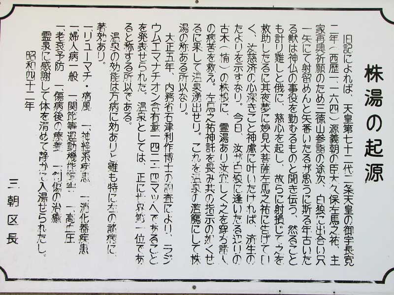 温泉街を外れた場所に株湯という共同湯があった。料金表みたいなものがあったので、こちらは外来も受け付けているようなのだけれど、今日は日曜日で掃除の日のようだった。おじさんとおばさんがごしごし一生懸命掃除をしていたのが見えて、共同湯ってこういうものなんだろうなぁと考える。ここにも飲泉ができる場所があって株湯の起源が書いてあった。こういうのは、なんだか思わず読んでしまう。田舎で良く見る綺麗なトンボがいた。