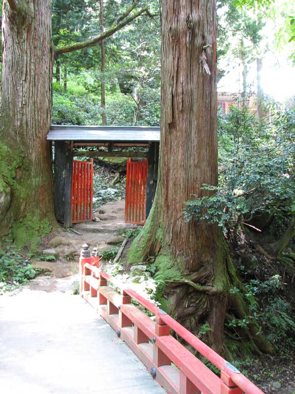 三佛寺本堂の裏に、登山受付口があって、ここで 200円を払って名前と住所と登山開始時間を記入して、袈裟をいただいて参拝開始。登山受付口すぐの場所に、小さな門があって、何かこれから神聖な場所に入っていくんだという雰囲気が漂う。