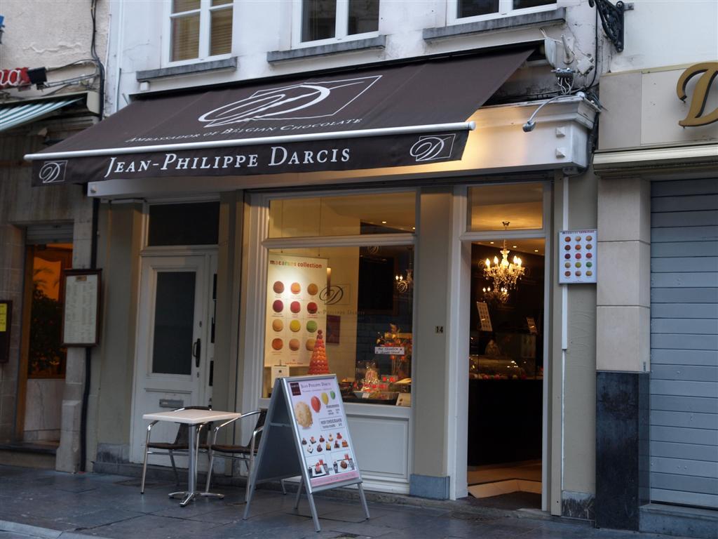 そして、次はチョコレート。奥さんも自分もチョコレートには目がなく、空港に降り立ったときから、いきなりたくさんのチョコレートが並んでいたので期待も膨らんでいました。Neuhaus、Godiva などの超有名店と並んで、最近は日本でも特定の季節などにデパートに出展するようになったという Jean-Philippe Darcis のお店もまたグラン・プラスのすぐそば。香り高く甘さ控えめなここのチョコレートはおそらく日本人好み。そして、日本人の店員さんがいていろいろと話も弾んだりします。カラフルなマカロンも、またケーキも絶品でした。