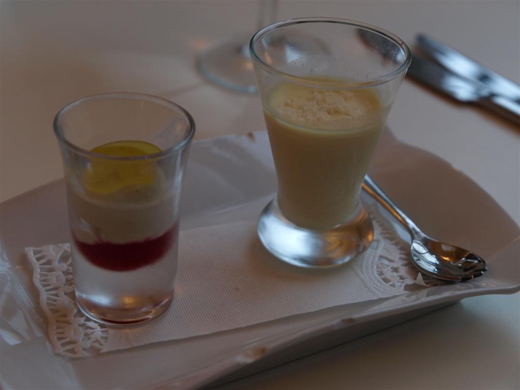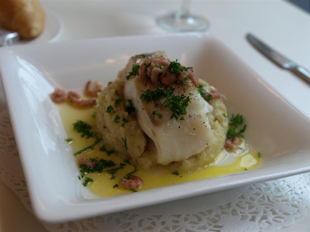 最終日のお昼は、魚料理のお店の多い聖カトリーヌ教会そばでと決めていて、雨に降られながら見つけたのが Eb En Vloed というブラッセリー。教会と黒い塔が見える素晴らしいロケーションで、雨に濡れた石畳もまたいい雰囲気。最初に出されたアミューズは、濃厚なチーズと海老のミソを使ったと思われるムース。これから出される料理に期待をさせてくれる味です。次がグースのレバーペースト。少し甘みがあるサクサクのパンにイチジクのジャムとあわせていただきます。濃厚で絶品、フォアグラほどは脂が強くなく個人的には本当に好みな感じ。メインはタラのグリル、小さな海老の軽い塩気が絶妙でマッシュポテトとの相性も抜群。スウェーデンでもタラは良くでる食材なんだけど、こういうプリプリの食感のものはまず出てこないので、魚料理をわざわざココに食べに来た甲斐があったなぁって感じの一品。