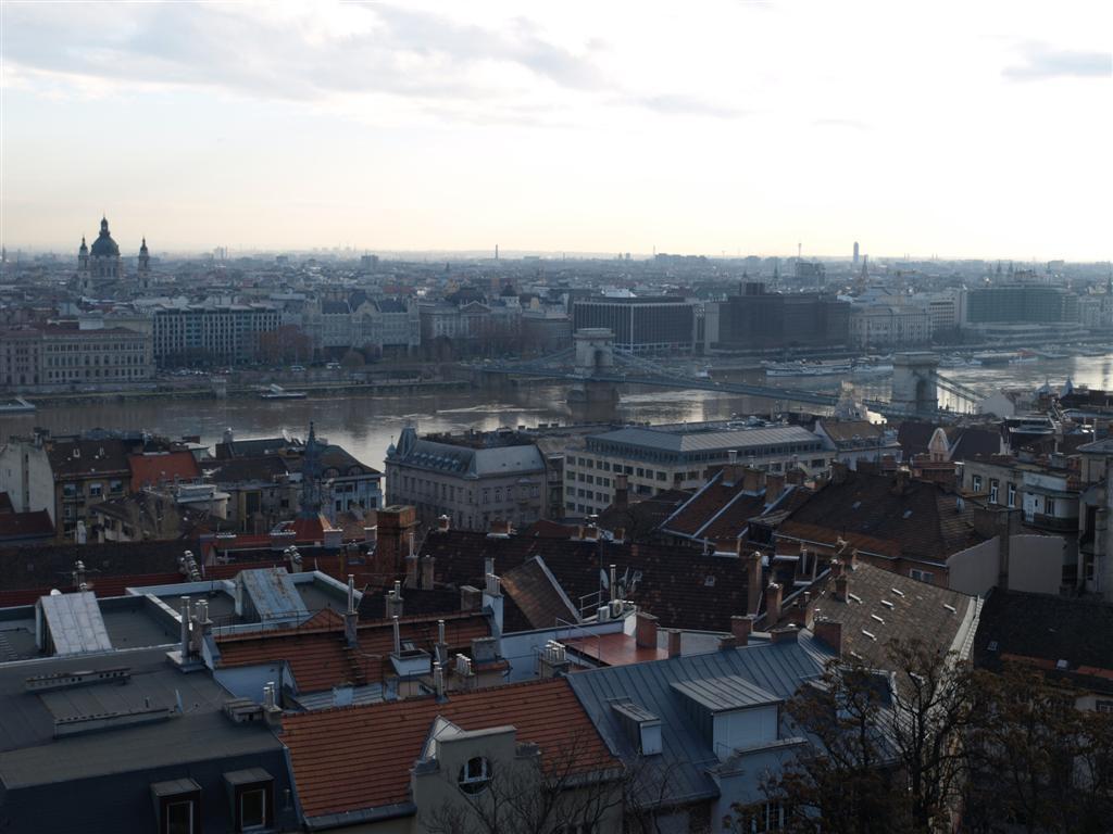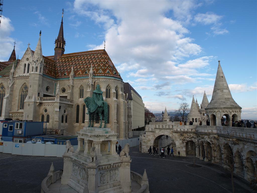 可愛らしいとんがり帽子のような形をした丸い塔を回廊が結んでいて、その回廊の柱の間から見るドナウ川の向こう側の景色がまた格別だったりします。漁夫の砦という名は、この城塞をドナウの漁業組合が管理していた伝統から名づけられたのだそうです。色とりどりのモザイク模様の屋根が特徴的なマーチャーシュ教会は、残念ながら工事中でその美しい尖塔は足場で覆われてしまっていました。最後の写真は、翌朝に部屋から撮った眺めです、ココからの景色を見ているだけでも飽きない感じです。