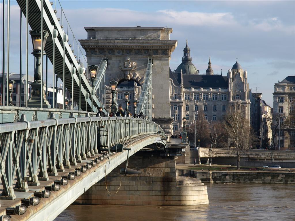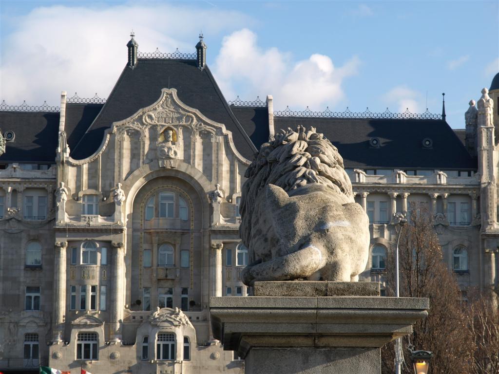 降りてきて近くで見るとかなり重厚で立派なくさり橋。ここからはブダ側もペスト側も眺めが素晴らしいので徒歩で渡っている人がたくさんいます。橋のたもとにはライオンの像がいるのですが、後姿がなんだか可愛らしくてパチリ。その向こうのやたらと重厚な建物はフォーシーズンズホテルです。