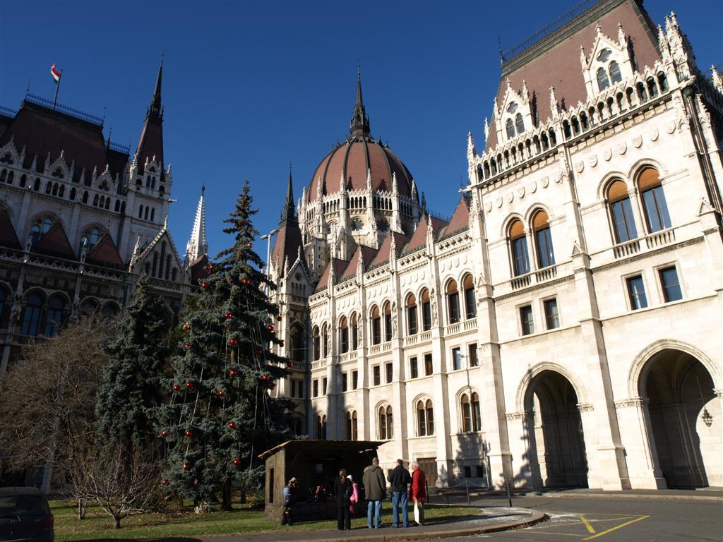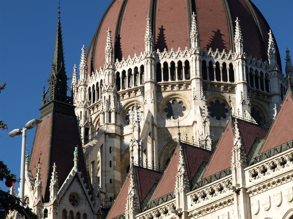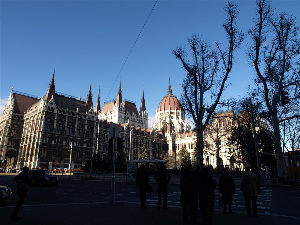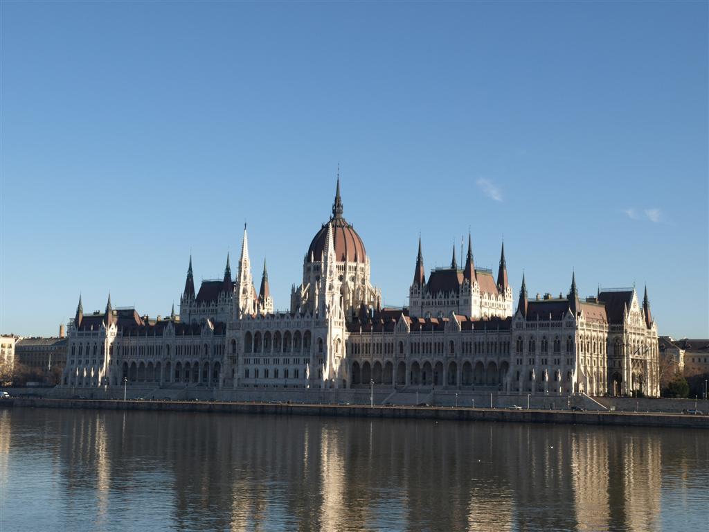ペスト側でもうひとつ目立つ建造物といえば、国会議事堂。1885年から建設されて 1902年に完成したのだそうで、実はそれは聖イシュトヴァーン教会が完成した時(1905年)とほぼ同じ。同じ時期に建設されたことがおそらくその理由だとは思うのだけれど、国会議事堂の中央のドームの高さは聖イシュトヴァーン教会のそれとまったく同じの 96メートル。ドームを中心に左右の翼が広がる様は対岸の王宮ともその姿形が似ているなぁと思ったりします。