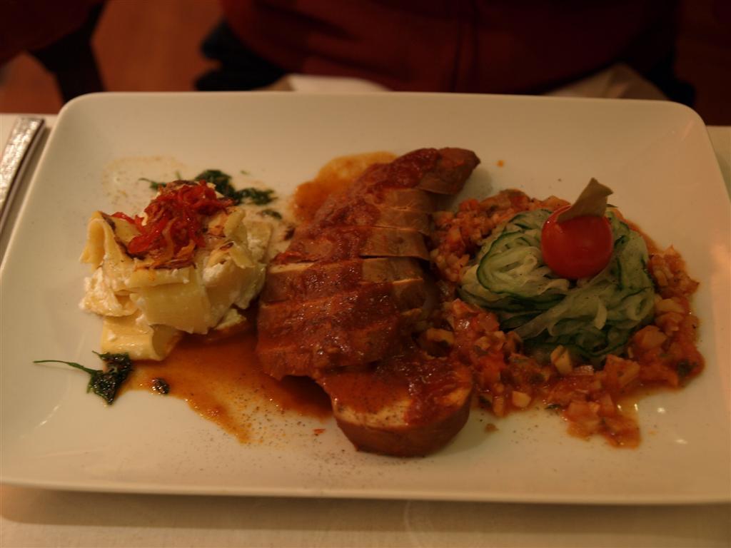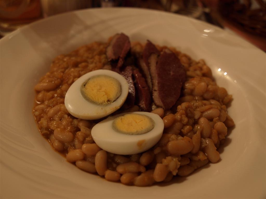ハンガリーの料理は、なんと言ってもパプリカ。最も代表的だと思われるグヤーシュはどのレストランでも基本的には「前菜」として出されるもののようでした(メインで食べられるものと思ってました)。程よくスパイシーで、牛肉と野菜がたっぷりで寒い時期には欠かせません。写真の一枚目は、冬に良く食べられるメニューのようでたっぷりの豆に燻製のカモとゆで卵がのったもの。次のはパプリカをたっぷり使ったと思われるチキンの煮込み料理。フォアグラのソテーなんかも有名で、ホテルの夕食でいただきましたがなかなかの美味です。
