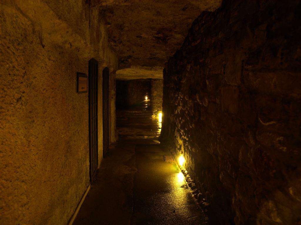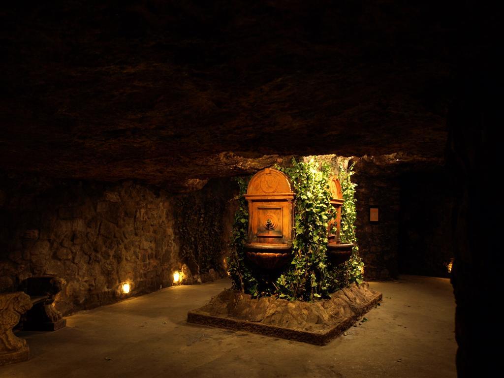 奥さんがしきりに行ってみたいといっていたのが王宮の地下迷宮。王宮の丘の地下には無数の洞窟が広がっていてその一部が観光施設として開放されているとのこと。街中にひっそりとある入り口に一歩足を踏み入れると「もわっ」とした温かく湿気の多い空気に包まれます。温泉があることと大いに関係してそうな、この洞窟の中は年間を通して 20度近くあるのだそうです。中はかなり真っ暗。目が慣れるまで足を進めるのをためらう程の場所もいくらか。面白いのは本物の赤ワインが流れるワインの泉。なんで唐突にワイン?という疑問がぬぐえません(笑)。