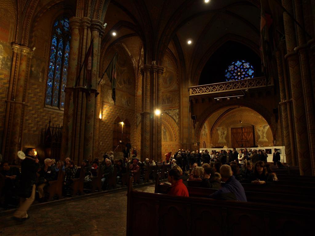 これまでの写真でも既にその景観の美しさが少しでも伝わったかなぁという感じではあるのですが、気に入った場所をもう少し。その一つはマーチャーシュ教会、モザイク模様の屋根は今までみた教会とちょっと違うなぁと思うのですが、中に入ると独特なアラベスクのような文様が壁一面に施されていて驚きます。これは、1541年にブダがオスマン朝に占領された際にモスクに改装された歴史の跡なのだそうです。