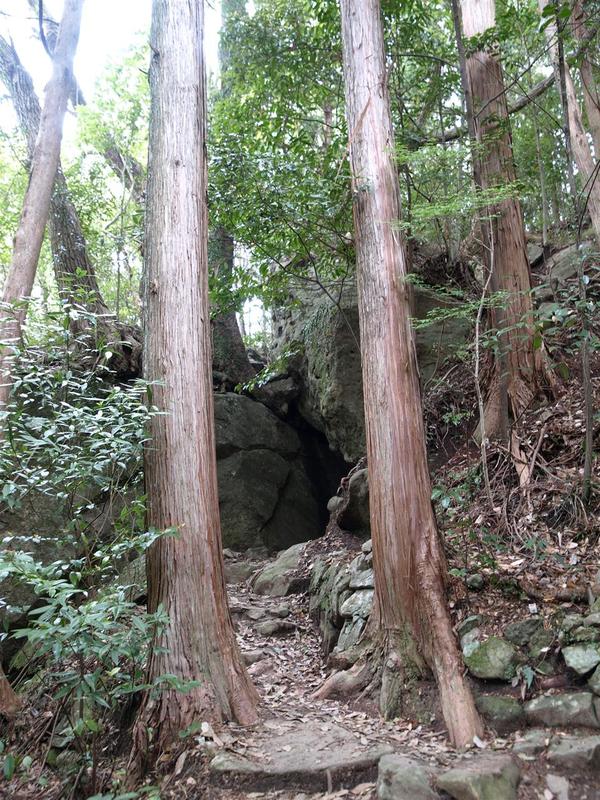 ガイドブックにも「霊域の入り口滝尻王子から天空の眺め高原霧の里へ」なんてルートが全行程 2時間10分のコースとして紹介されていたので、その滝尻王子の社殿の裏から始まる道に入ると結構というか子供を抱えて登るにはかなりキツイ道。巨石の隙間を通り抜けることができたら女性は安産になるという「胎内くぐり」と「乳岩」というのを見るところまでで、子供を連れて戻ることも考えて引き返しました。本格的な登山の格好をした人たちが結構いたところを見ると、ここから数十キロも先にある熊野大社まで歩いて行くのかなぁって思うのですが、ずーっとこんな道だとしたら大変かも。