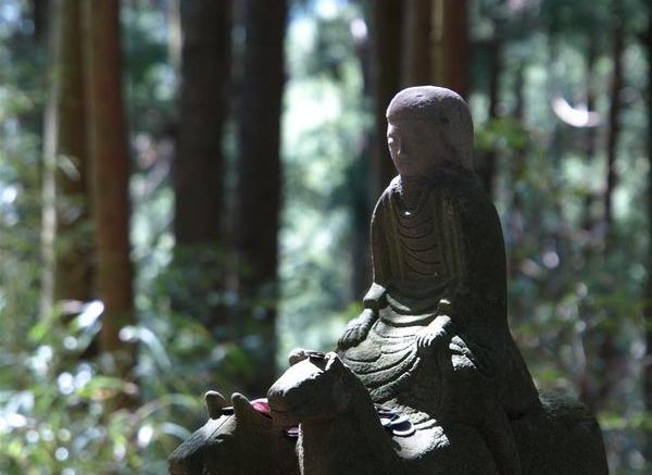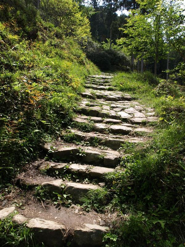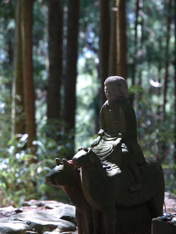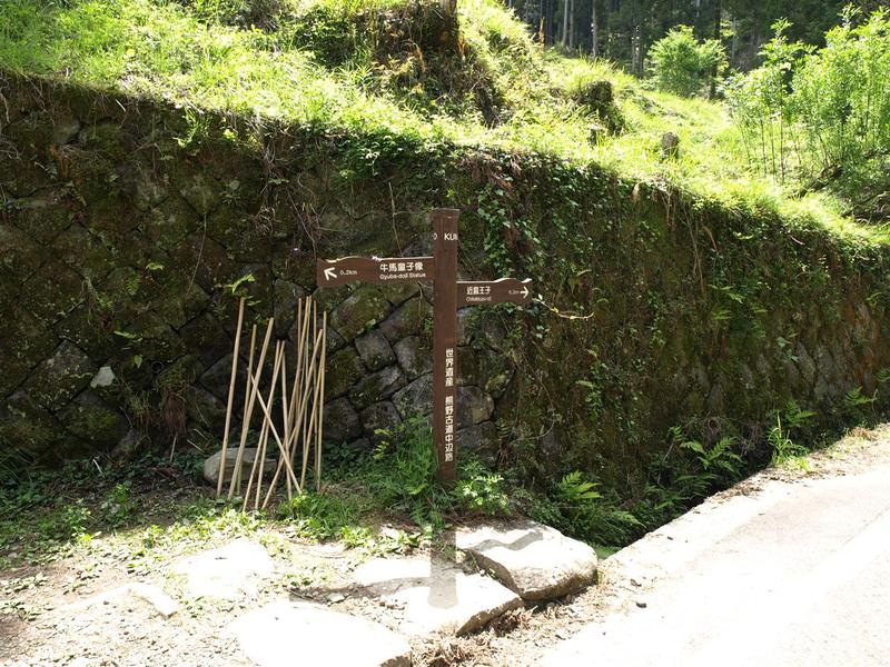 近露王子からなだらかな旧道をしばらく行くと、熊野古道に入る階段があるので入っていくと小さな近露の里が目の前に広がります。熊野詣をした昔の人が見た眺めもこんなだったのかなぁと思ったりします。滝尻王子の登山道のような道に比べればずっと楽な道でしばらく行くと牛馬童子の可愛らしい像が見えてきます。本当に小さくて可愛らしい像で、思わずしゃがんでお参りをしたくなります。
