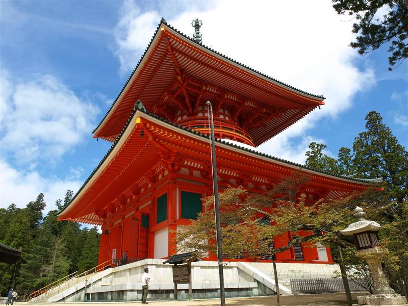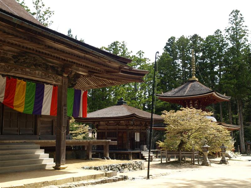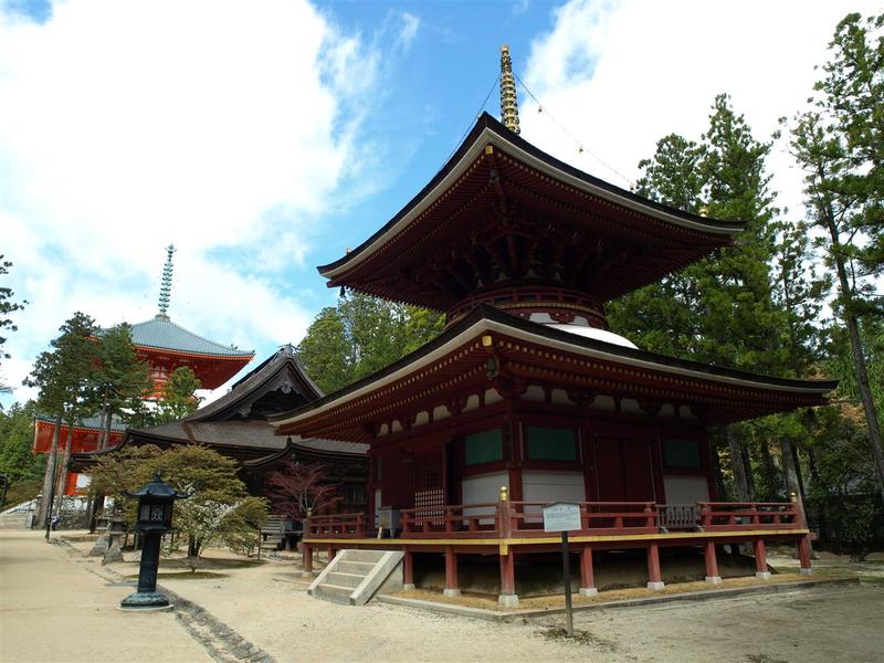 翌朝向かったのが壇上伽藍。弘法大師が高野山の造営をここから始めたという場所。2015年に高野山は開創1200年を迎えるとのことで、それを記念して再建される中門の跡の向こうに見えるのが高野山の総本堂の金堂。この日も多くの修行僧がいました。鮮やかな朱色がまぶしい建物は根本大塔、元々は887年頃に完成したもので、現在の建物は 1937年に再建されて1996年に外壁の塗り替えが終わったということで、その色の鮮やかさが際立つのもなるほどという感じ。この他にも御影道、東塔、西塔などなど密教の思想に基づく多くの建物が立ち並んでいました。