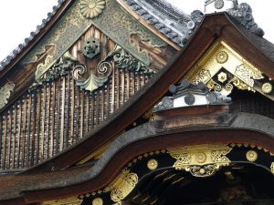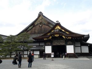 宿が二条城の目の前だったので最初の観光はここから。書院造りの二の丸御殿、うぐいす張りの廊下や当時の将軍が諸大名と会った部屋、そこに飾られた狩野門下の見事な絵など見所に欠きません。天気も良く外を歩くのにもぴったり。