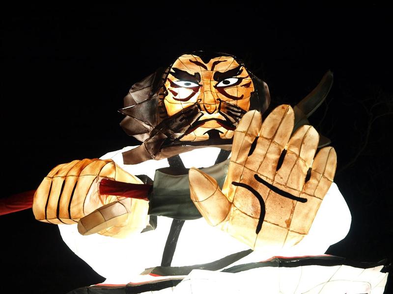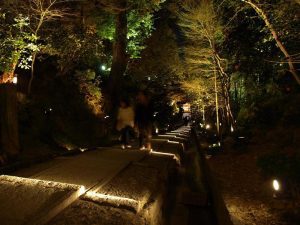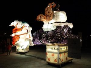 京都東山の花灯路にやって来ました、寺院や通りが幻想的にライトアップされています。東西線の東山駅で降りて最初に向かったのが知恩院、柔らかな光でライトアップされていて雰囲気があります。その直ぐ目の前の広場では粟田大燈炉というねぶたの原型になったとも言われている燈炉が展示されていました。それほど大きさは無いのですが、なかなかの迫力です。