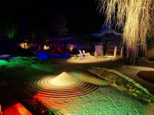 会場の至るところに、いけばなの作品があったり小川には竹で作られた灯籠があったり、どこを歩いていても思わず足をとめてじっくりと魅入ってしまう風景があって、本当に飽きません。