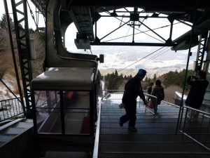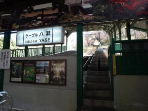 ロープウェイの待合室が据え置きのストーブといい、青いカバーの長椅子といい、なかなかいい雰囲気を醸し出していました。ケーブルカーで八潮まで降りてくると遠足の子供たちがどうやらハイキングが終わった様子でがやがやと楽しそうでした。