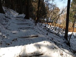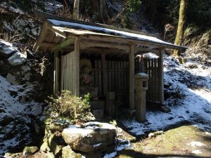 平日だったこともあって、比叡山内を走るシャトルバスまでの時間もかなりあったので、山頂から歩いて延暦寺まで向かってみることにしました。ロープウェイの駅員さんによると30分ほど歩けば着くよってことだったのですが、雪も多く残っていてちょっと一苦労。でも道中の景色も良く、地蔵などがある参道を歩くのはなかなか気持ちが良かったので個人的には歩いて正解。