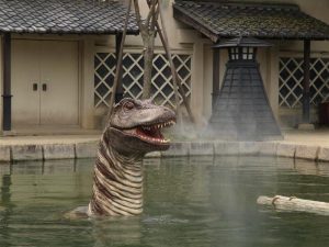 戦隊モノのショーは休日にしかやっていないということでちょっと残念でしたが、忍者ショーがやっていたので入ってみました。親子で結構楽しめます。映画村なのでこういう恐竜みたいなのが出てくる場所があったり、スーパーヒーローランドってことで歴代のスーパー戦隊が集結しているような場所もあったりで、子供にとっては飽きることがありません。あまり期待せずに入って食べた「水戸黄門ラーメン」がいろんな薬味が効いて美味しかったのと、お箸が刀の鞘を模した袋に入っていて子供がそれを背中にさして遊んだりして、どこに行っても楽しめる場所でした。