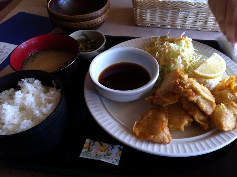 お昼はやっぱりから揚げ、ゆず胡椒でいただくっていうのがちょっと新鮮。こういう場所のご飯にしてはなかなか美味で満足でした。