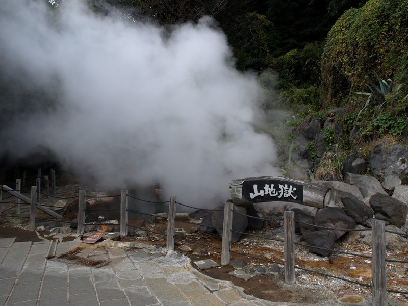 奥さんとここに来たのはもう10年近く前。確かカバにえさをあげたのが面白かったよね、子供にも見せてあげたいな〜、でもあれどこだっけ?たぶん、隣の山地獄じゃないかな」ってことで山地獄にやってきました。山肌から蒸気が吹き上げていてそれはそれで凄いのだけど、海地獄に比べるとインパクトには欠ける感じ。でも、ここにやっぱりいました、カバ。たぶんこの年老いた感じからすると、僕らが10年近く前に来た時と同じカバかな。奥さんがあの時と同じように楽しそうにニンジンをあげてましたが、子供はその巨体に驚いてひいて逃げちゃいました(笑)。地獄めぐりをもう少し続けようと近辺を歩くと、あちこちで温泉の蒸気が吹き上がっていて本当に凄い場所だなぁと思います。