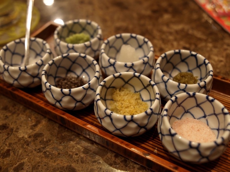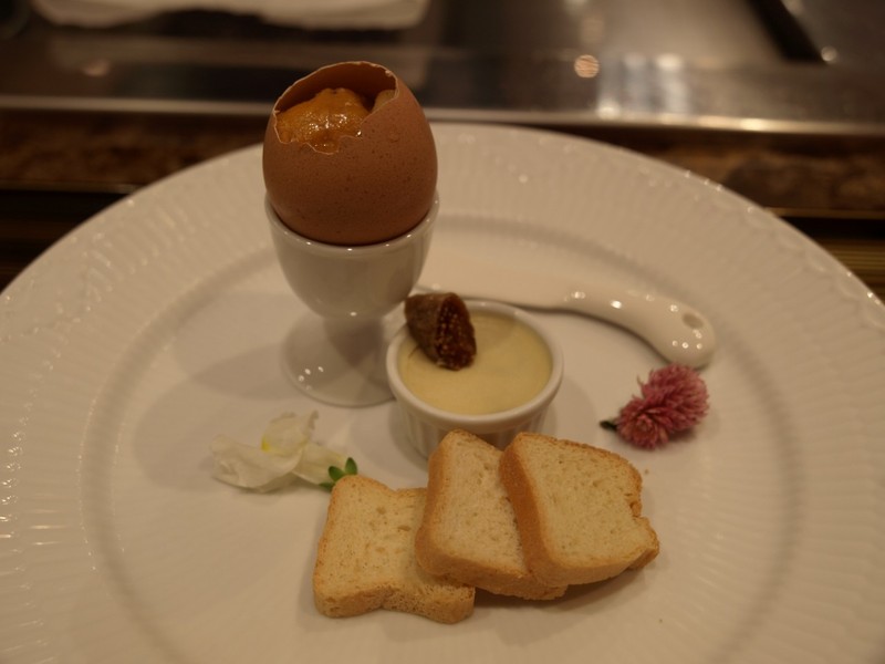 子供がいるからちょっとどうかなと思っていましたが、昆虫のパズルをくれたりしてしきりに気を配ってくれるスタッフさんのおかげもあってのんびりと鉄板焼きのコースを楽しむことができました。地元の野菜、高千穂の肉厚なしいたけ、ヒレのステーキなどなどさまざまな変わり塩でいただきました。