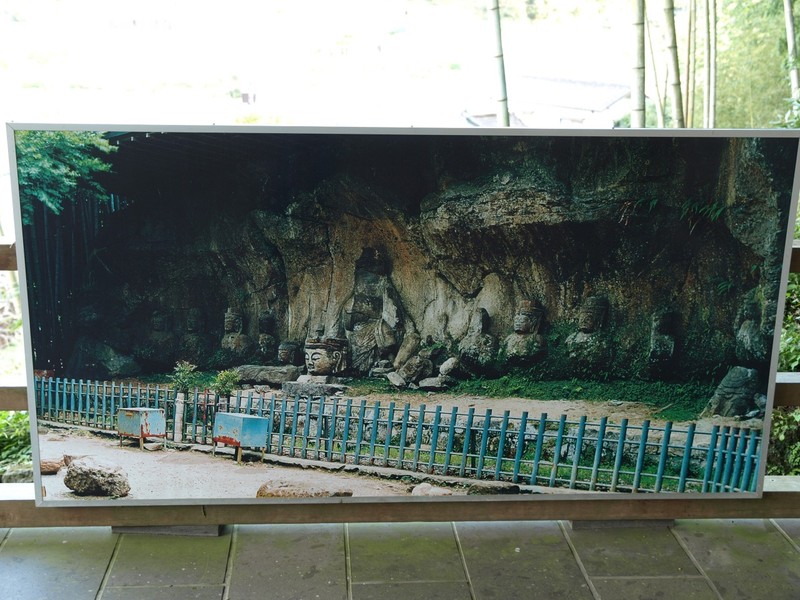 左端の写真が臼杵大仏をもっとも有名にしている古園石仏。でも、どうも記憶にある感じと違うなと思っていたら、昔の姿の写真がありそれにピンときました。当時は確かに石仏群を覆う建物はなく、真ん中の石仏は首が下に安置してあるような状態でした(石灰質の崖に彫られた石仏で、ひどく損傷していたのをわりと最近修復と保護工事をしたようです)。良いか悪いかという問題はさておき、昔の状態の方にやはり引き付けられる気がします。
