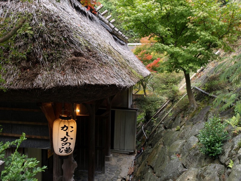 垂玉温泉 山口旅館(2016年の熊本地震で大きな被害を受けた後、垂玉温泉 瀧日和として再開予定)は、阿蘇に来た際には必ずお世話になっているお宿。静かな山奥の一軒宿で、素朴な料理、すばらしいお湯、湯屋の雰囲気と滝を眺める抜群の露天風呂、そして最初に訪れた時に起こったちょっとしたトラブルへの宿の方の親切な対応のどれもが忘れられないというのがあって。紅葉には少し早かったけれど、平日で空いていたこともあってお風呂をのんびりと楽しめたのが何より。かじかの湯は萱葺き屋根が印象的な露天風呂。