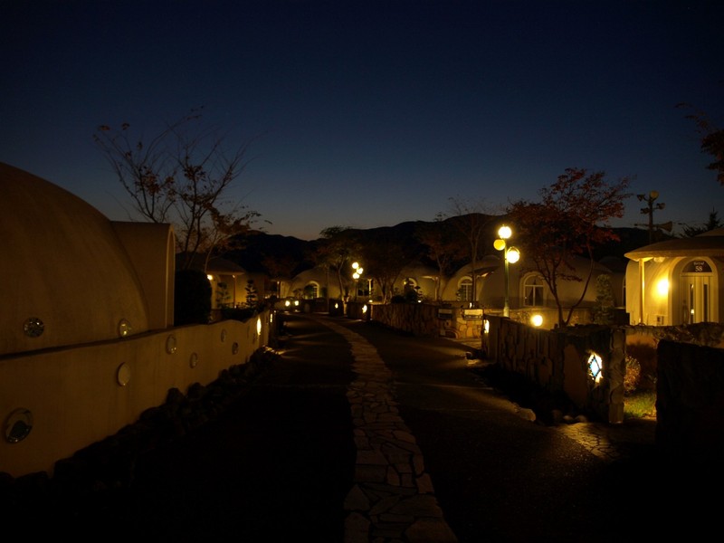 ドーム型のちょっと面白い形をした宿泊施設に、いろいろと遊べる施設が併設されていて、子供連れにはなかなか楽しそうかなと思っていたのが 阿蘇ファームランド(阿蘇ファームヴィレッジ)。ドーム型の部屋がたくさん並ぶ様子はちょっと他では見られない不思議な光景。夜は各部屋の明かりでなかなか幻想的になります。不思議な形状なのでどうかなと思ってたけど、部屋は広くて至って快適。この部屋に喜ぶかなと期待していましたが、子供がもっと喜んだのがこのライトアップ。特に動物の形をしたものがたくさんあって、それを動物園に見立てて何度も何度も動物園のガイドさながらに案内するのにつき合わされました(苦笑)。とはいえ、実際凄い数の電球を使ったライトアップであることは間違いなくなかなか綺麗です。