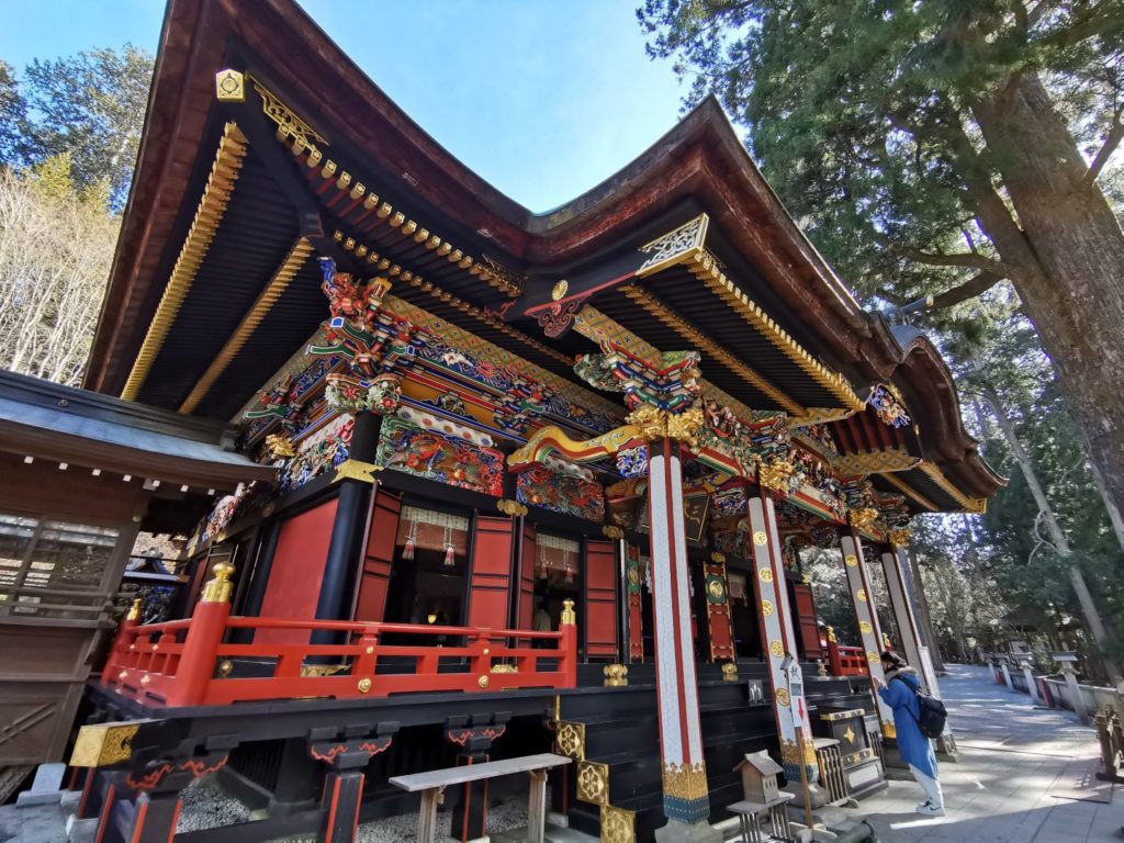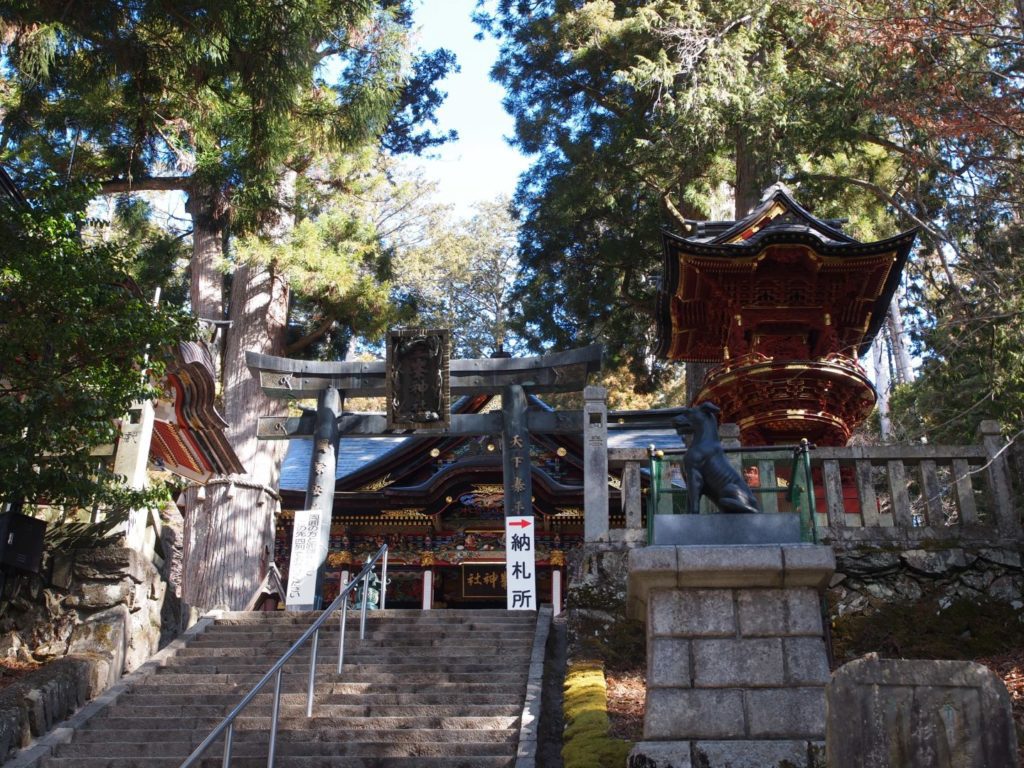 青銅の鳥居をくぐって目の前に現れる拝殿は極彩色が美しく、ちょっと日光の東照宮を思い出させます。この日はコロナ禍ということもあってか、人でごった返すこともなく落ち着いて参拝できた。早朝に家を出て朝ごはんを食べずに氷柱の見学をして参拝に来たこともあって、お腹も空いていたのでなにか食べる場所が無いかなと探していたら、宿泊ができる興雲閣というの建物があってレストランが有るようなので入ってみた。おすすめがしいたけ丼と書いてあったので頼んでみると、巨大なしいたけをフライにした丼、これがジューシーでなかなかの美味。再訪することがあれば、また食べたい。
