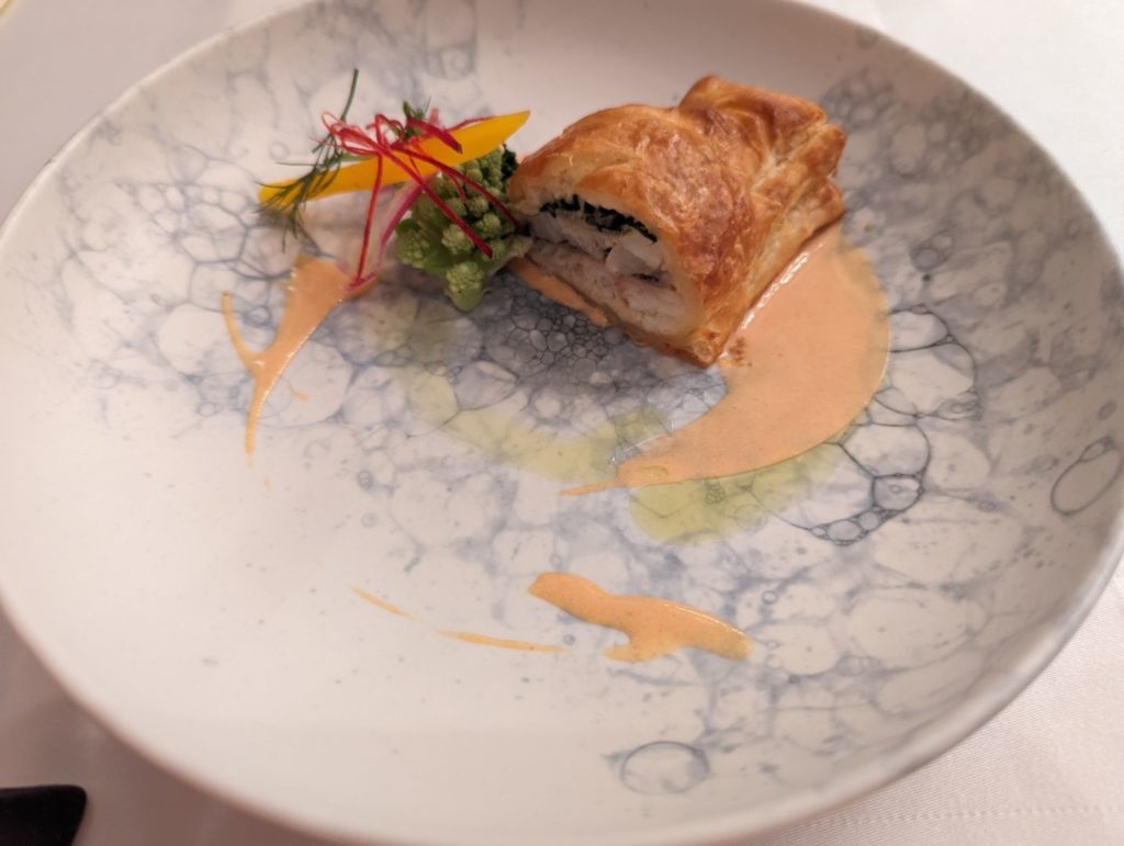 魚料理: 北海道産アイナメとシブールのパイ包み焼き トマトバターソース