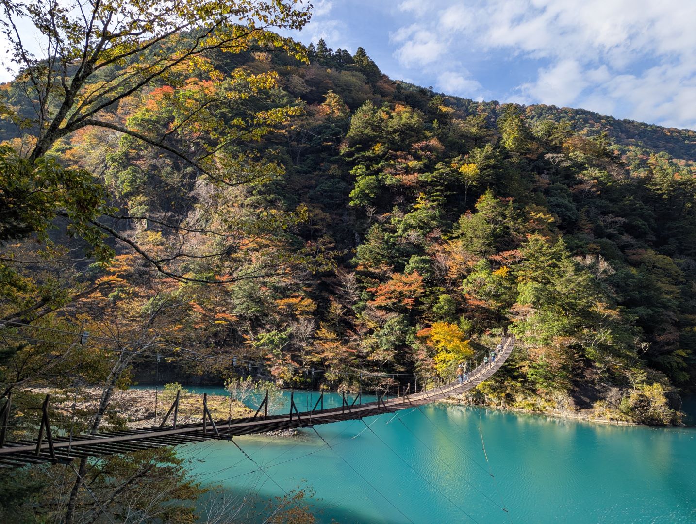仕事や出張が重なっていたこともあって、久しぶりの浜松での休日滞在。晴天に恵まれ、ちょうど紅葉の時期も重なった日曜日、今度こそエメラルドグリーンの水をたたえる寸又峡の夢の吊り橋見てみたいと、急に思い立って車で出発(過去に3回ほど行っているのですが、いずれも濁ってたんです…)。
