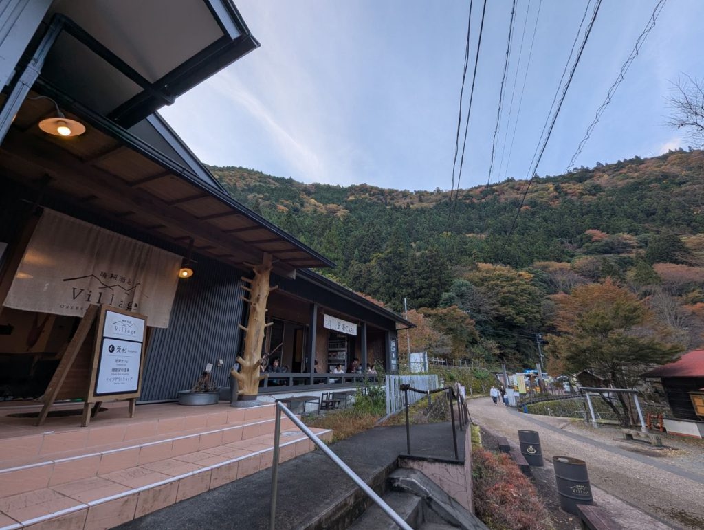 待ち時間も含めて 2時間弱の夢の吊り橋への散策を終えて、体がだいぶ冷えてきました。翠紅苑や町営の露天風呂も良いのだけれど、どこか別の場所で温泉入ってみたいなと考えたのは、遊歩道の入口にある晴耕雨読ヴィレッジさん。景色を眺めながら足湯に入りながらカフェメニューをいただくのも悪くないなと思ったのですが、45分の貸し切り風呂があるというので早速。