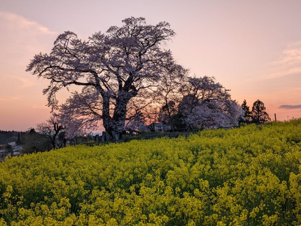 三春滝桜も本当に素晴らしかったのですが、この近辺には美しい桜が多くあって、車を走らせていると思わず目を奪われるようなところが多く、実際何度も車を止めてこうして写真を撮ったりしていました。