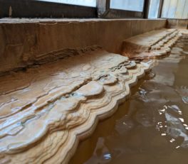 大台ケ原の登山後の温泉探し、道中ちょっと気になった入之波温泉の山鳩湯へ。濃厚な炭酸水素塩泉は茶褐色、カルシウムで大量の析出物が湯船に。ダムと木々の緑が美しい露天風呂も最高でした。