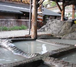 垂玉温泉の山口旅館の宿泊客は、さらに少し山側に進むとある地獄温泉にも入ることができると言うのでせっかくなのでお邪魔してみることにした。清風荘のすずめの湯は、硫黄の香りが強く漂う泥湯のお風呂。