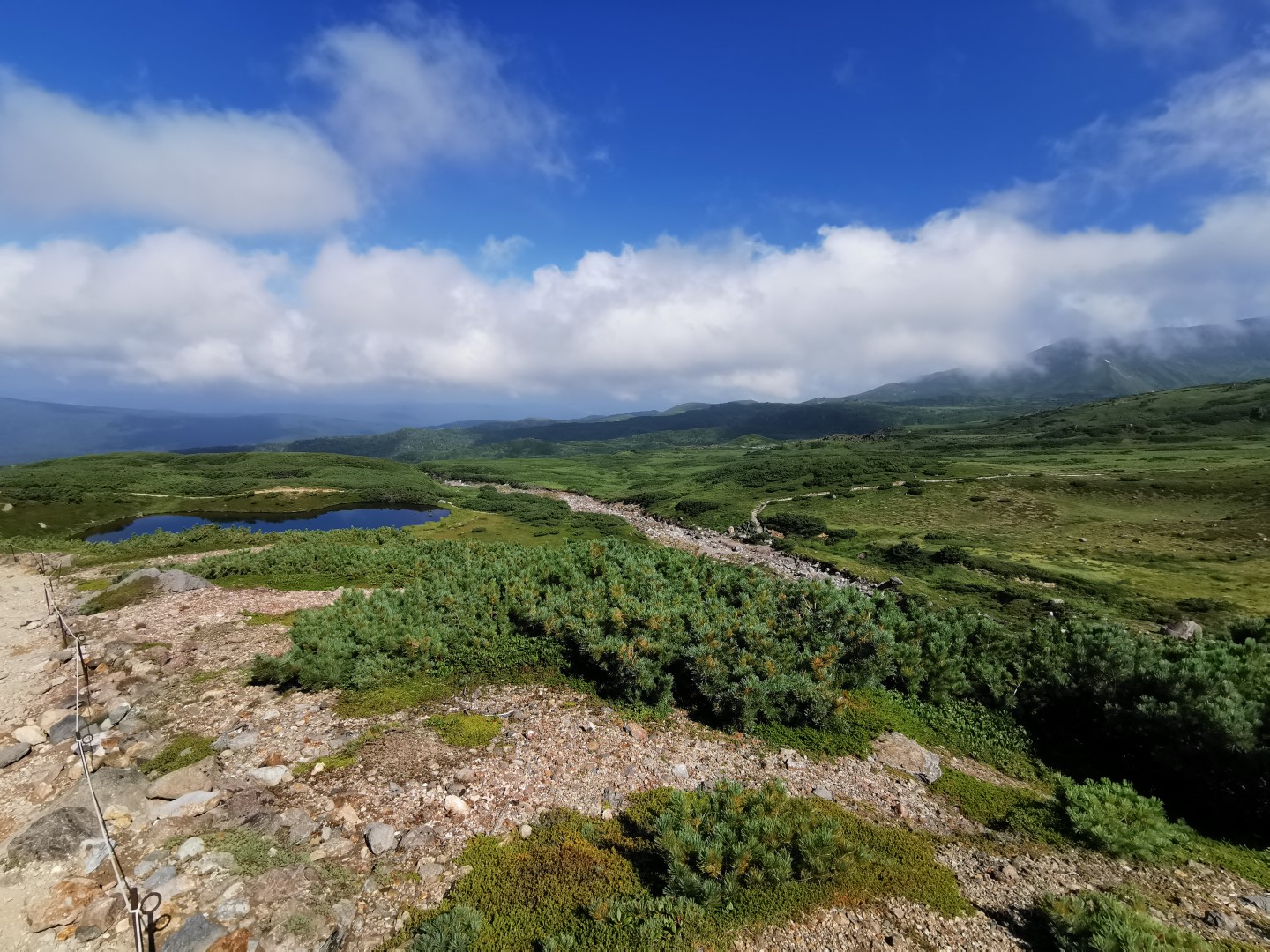 From Asahidake Onsen, you can take the ropeway up to the middle of Mt. Asahidake, and from there you can not only enjoy climbing Mt. Asahidake but also a light hiking course that takes about an hour to complete. Today, I had a little time before my flight back home and the weather was crystal clear with almost no clouds, so I took this hiking course. The scenery was truly spectacular, and there were many alpine plants in bloom, as well as small animals, including the occasional fox, and rare insects, making it easy to lose track of time.