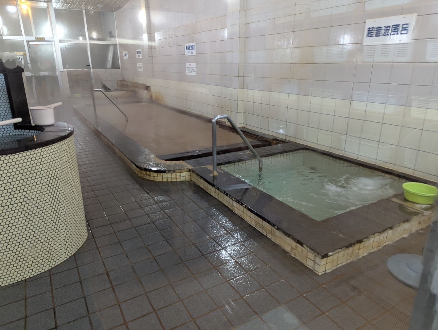 The hot spring here is a simple iron cold spring with a distinct brownish color. There are two baths labeled “medium temperature” and “high temperature,” but even the medium-temperature bath is quite hot. The high-temperature bath, on the other hand, is so intense it feels like it could scald your skin, leaving you red as a boiled octopus. Watching a regular patron, seemingly the “master” of the place, leisurely soaking in the high-temperature bath, I decided to give it a try when the spot opened up. The heat was so intense that I genuinely thought I might get burned!