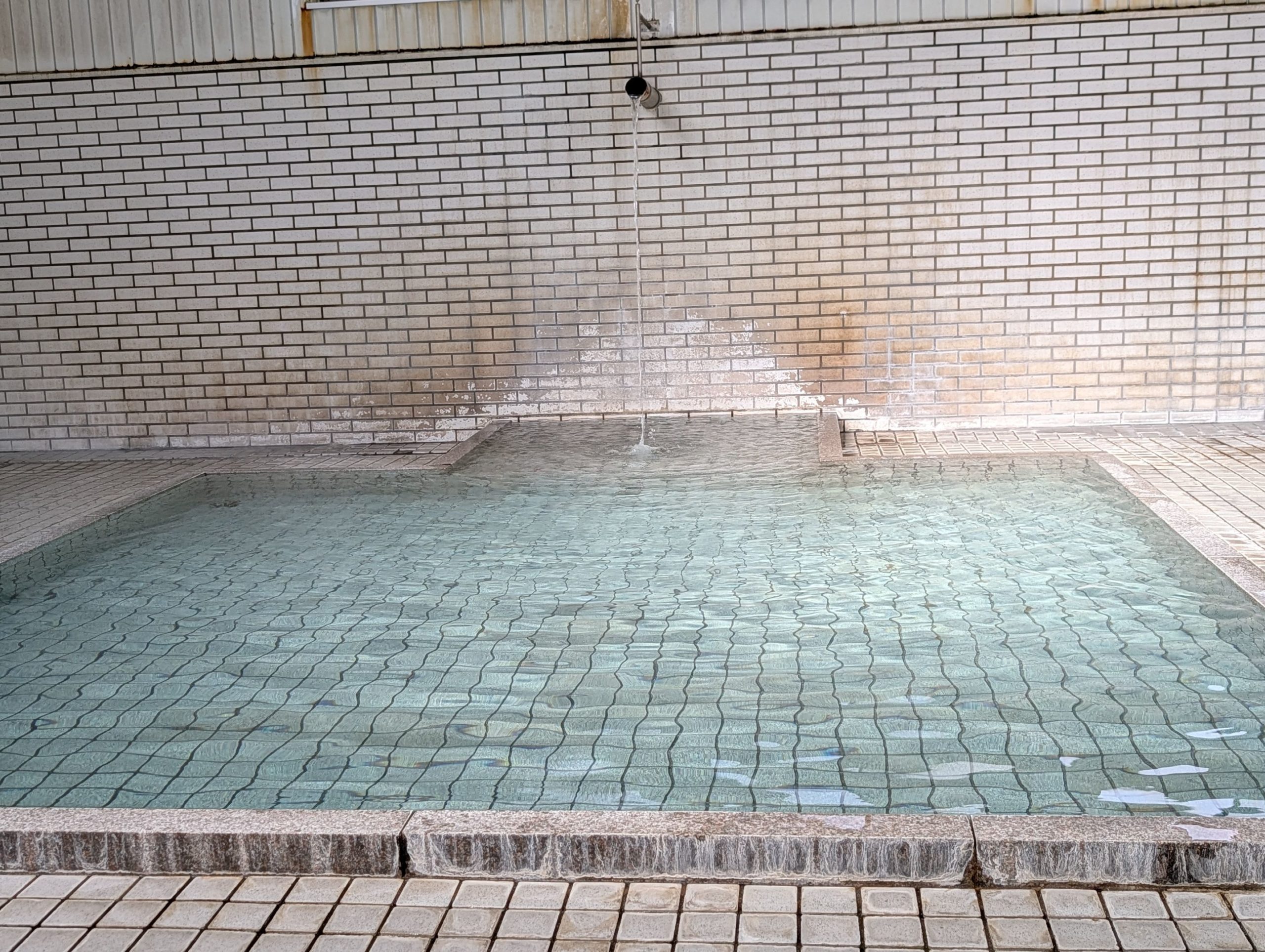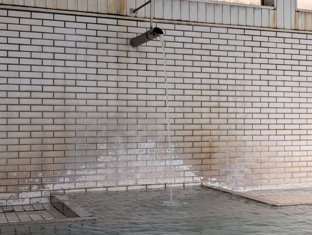 The water was quite hot. I could only manage to stay at the very edge, as far as possible from where the water was pouring in. It felt like it was around 43-44 degrees Celsius. With this kind of heat and the way the water overflows onto the floor, it’s the kind of place where you’d half-expect to see someone lying down on the tiles for a “todo-ne” (sea lion nap).